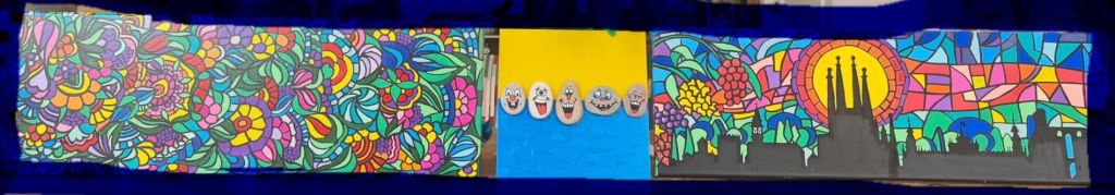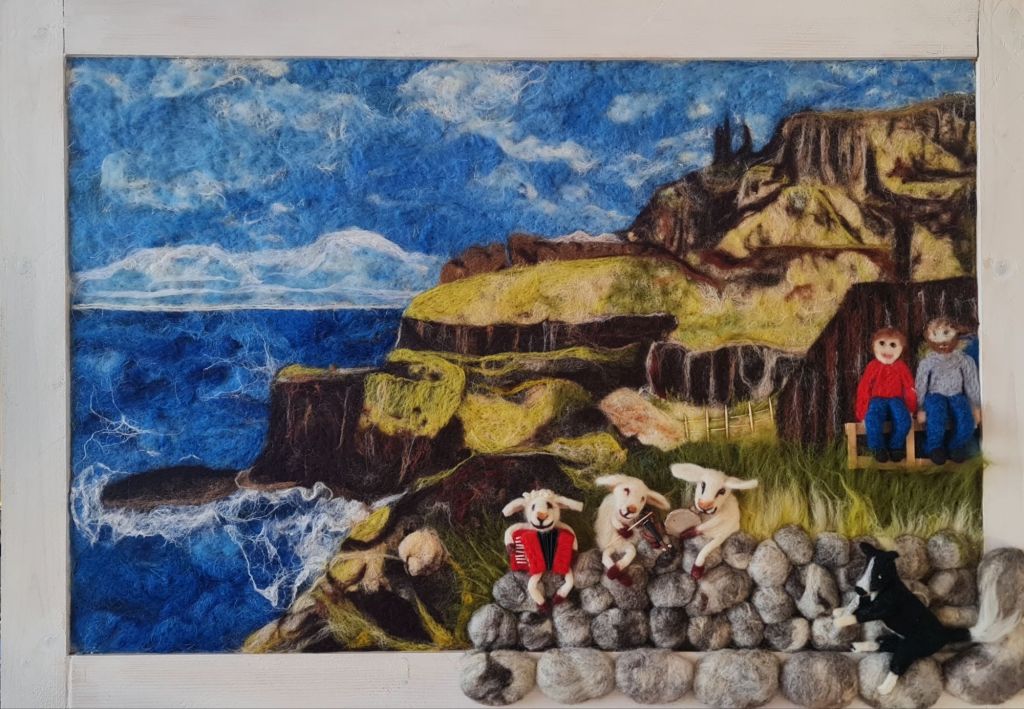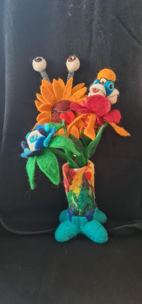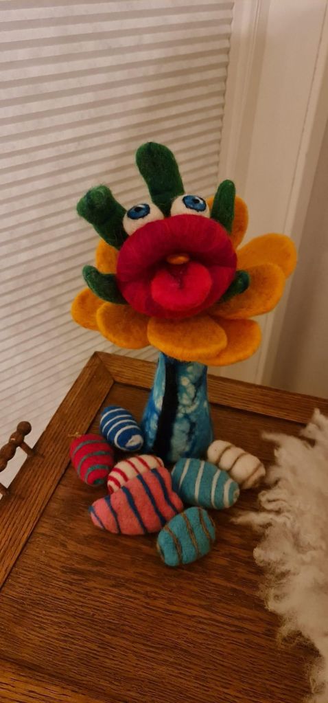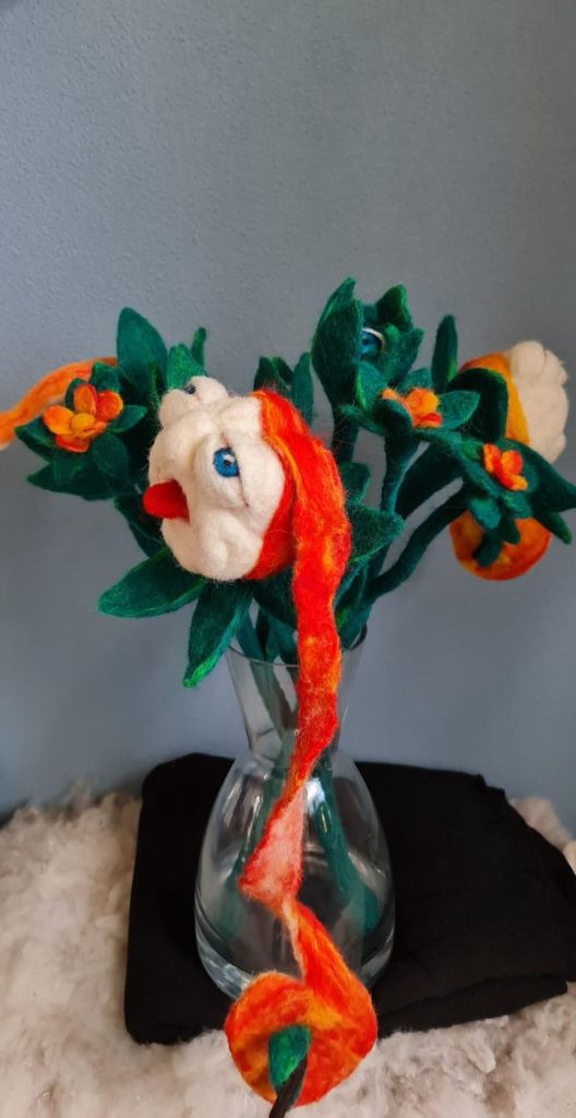 Een serie blonsters ( bloemenmonsters) gemaakt. Wol, ijzerdraad en naaldviltenEn voor het reisje naar Eurovisie moesten er natuurlijk wel wat haarbanden worden gemaakt in ratatouille themaEn wat is het dan leuk om al reizende wat tekeningen te makenEn te schilderen wat we hebben gezien (rondreis Spanje)En de Wild Atlantic Way (naaldvilten), waarbij we de wol van een Ierse schapenboer kregen.